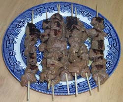 I cooked the kebabs in my new George Foreman Grill (3 minutes) and they came out pretty well - a good thing as I specifically bought it to make kebabs and fish, things that are not easily turned. The instructions below are for a traditional broiler however.
