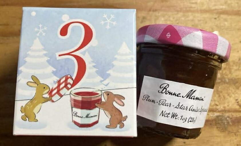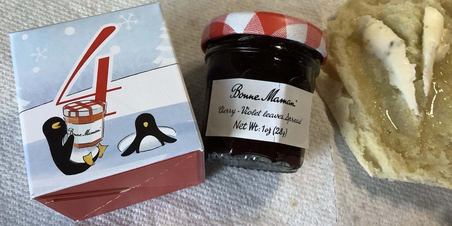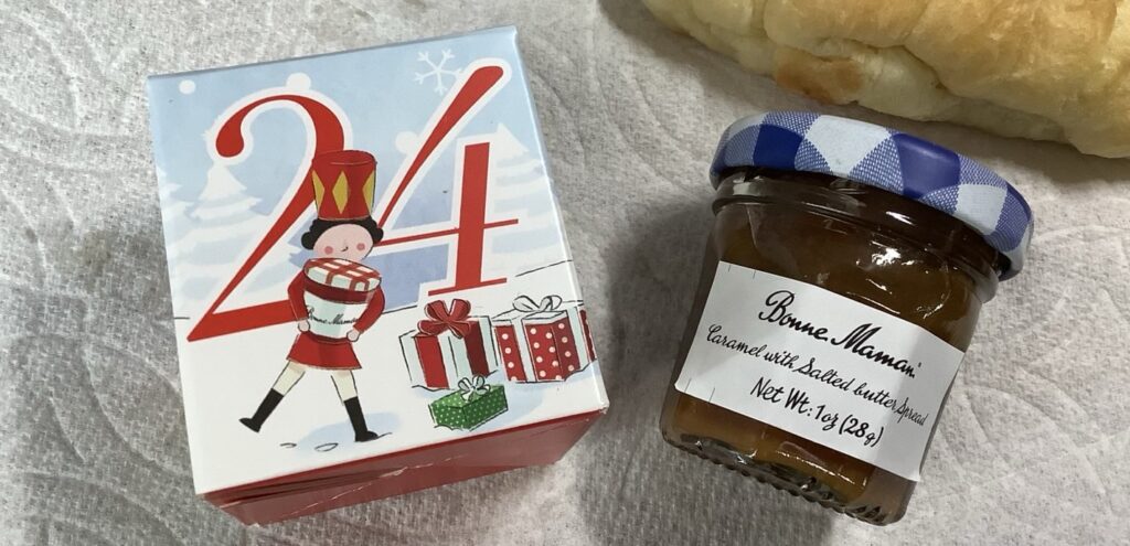 This year, I gifted myself the Bonne Mama Advent Calendar. It was on sale for $35 at World Market (30% off its $50 regular price) for Black Friday, and I appreciated the idea of having an advent calendar I could not only use daily, but share and review! I’m not the biggest jam aficionado in the world, but I do like it on bagels with cream cheese or toast and butter. BTW, in this review I’m using the words jam and spread as synonyms.