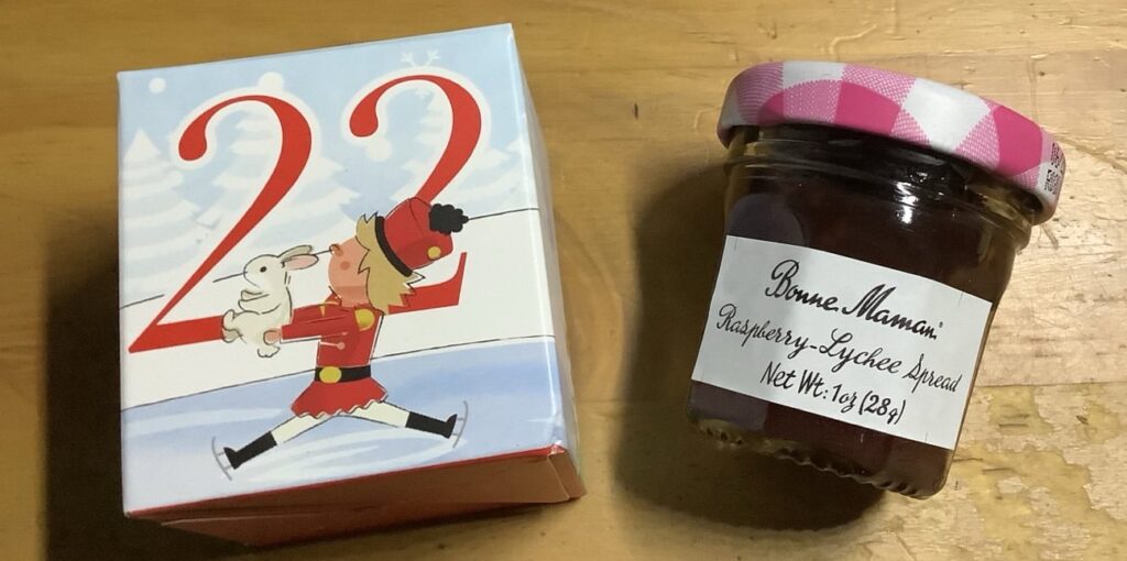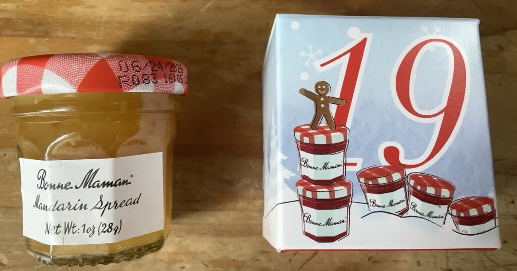 Note that the jams have different expiration dates – while some are well into 2027, others expire in mid-2026. This means that you might not want to buy one this year to gift next year (a thought that occurred to me after day four, given how much I was enjoying the calendar). Hopefully they’ll be just as easy to find in 2026.