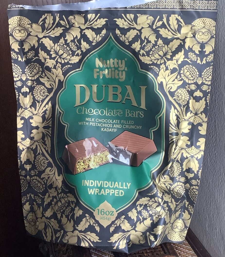 I’ve been late to the Dubai chocolate craze. Indeed, my first encounter with Dubai chocolates didn’t come until last week, when my husband gave me one of the Nutty Fruitty Dubai chocolate bars he had bought at Costco ($17 at Costco).