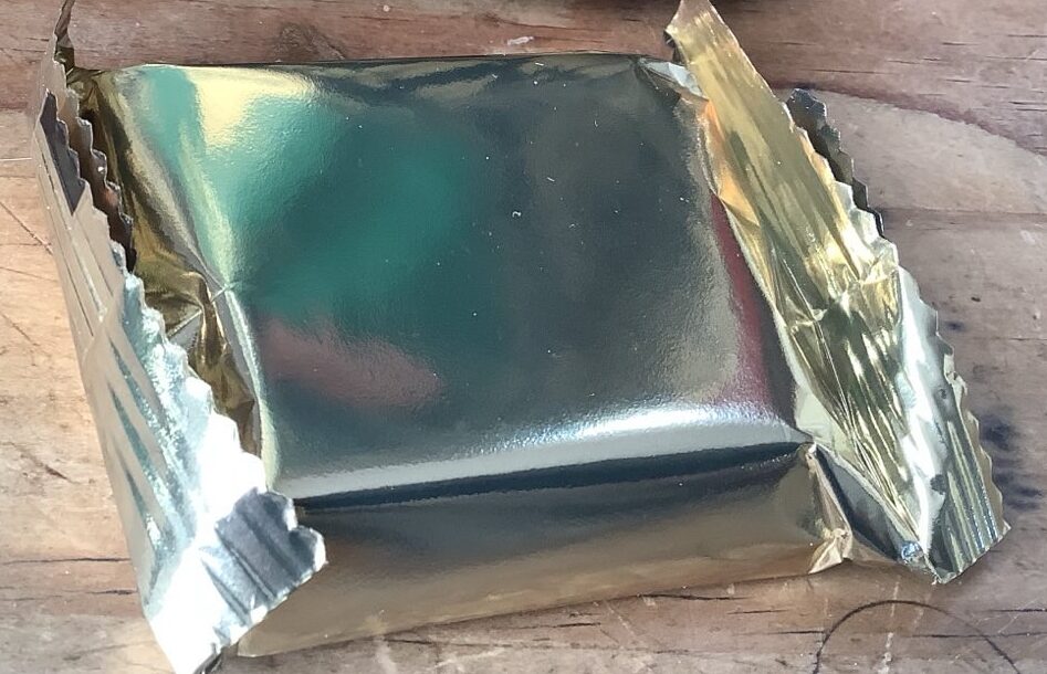 The bag came with 15 individually packaged square chocolates, approximately 1 1/2″ x 1 1/2″). The chocolates basically consist of pistachio butter in a milk chocolate coating. They are pretty good, quite tasty but I found them too sweet. As I’ve found pretty much every confectionary I’ve tasted in the last few weeks “too sweet,” I have to conclude that’s a me problem.