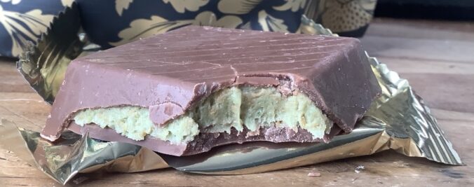 The bag came with 15 individually packaged square chocolates, approximately 1 1/2″ x 1 1/2″). The chocolates basically consist of pistachio butter in a milk chocolate coating. They are pretty good, quite tasty but I found them too sweet. As I’ve found pretty much every confectionary I’ve tasted in the last few weeks “too sweet,” I have to conclude that’s a me problem.